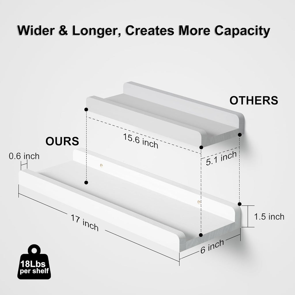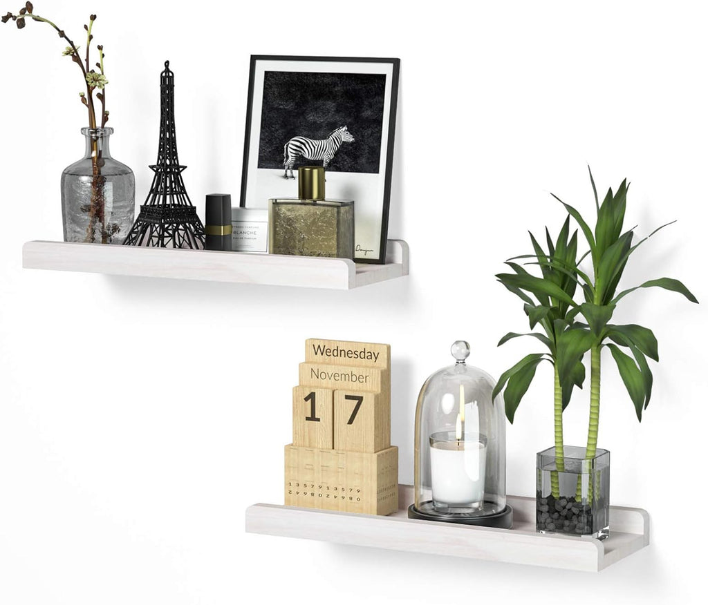 Love-KANKEI Floating Shelves Wall Mounted Set of 2, 17 Inch Rustic Wood Wall Shelves for Storage, Bedroom Living Room Bathroom Kitchen Office and More White