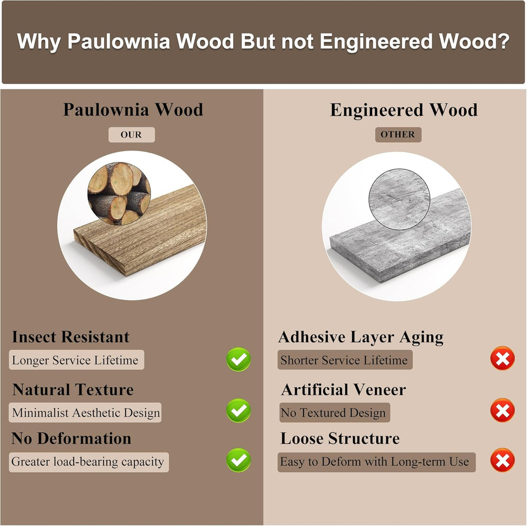 There are pre-drilled holes on the shelves, and all the necessary screws and anchors are included, very easy to install. And its rustic outlook make it not only a pretty decor to adorn your home, and a useful storage tool to place and organize small items in your bedroom, living room, kitchen and more, but also a great gift to your family and friends.